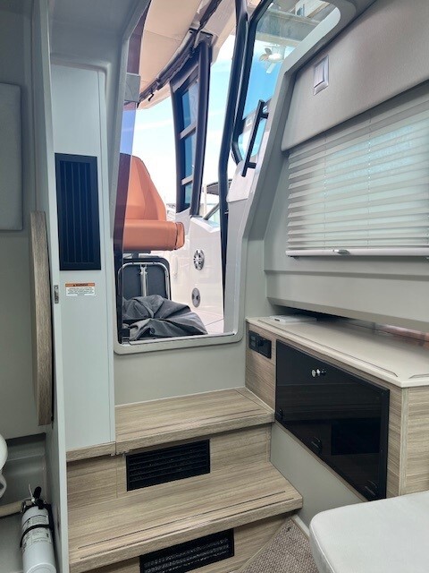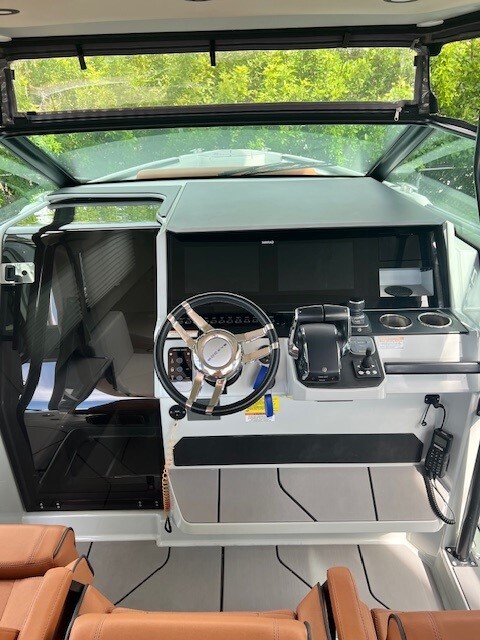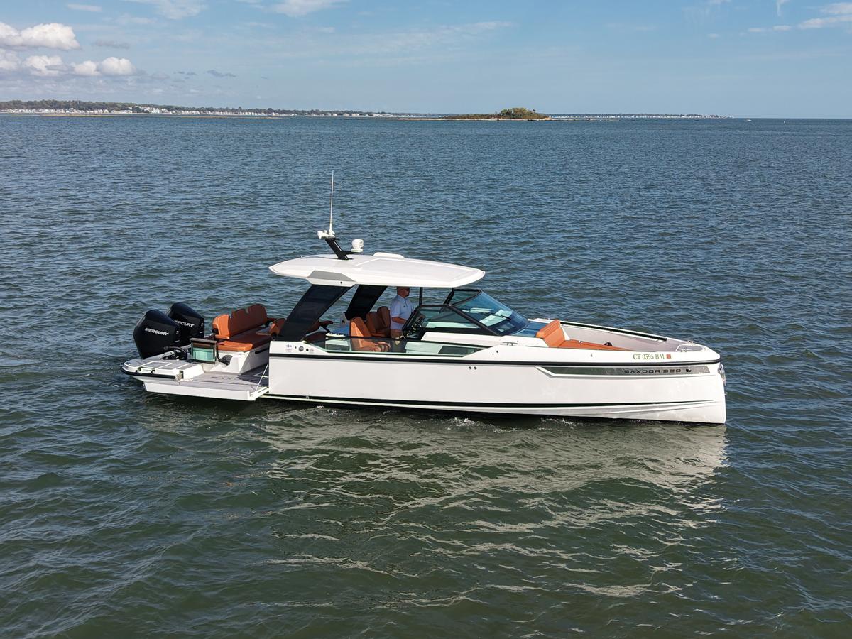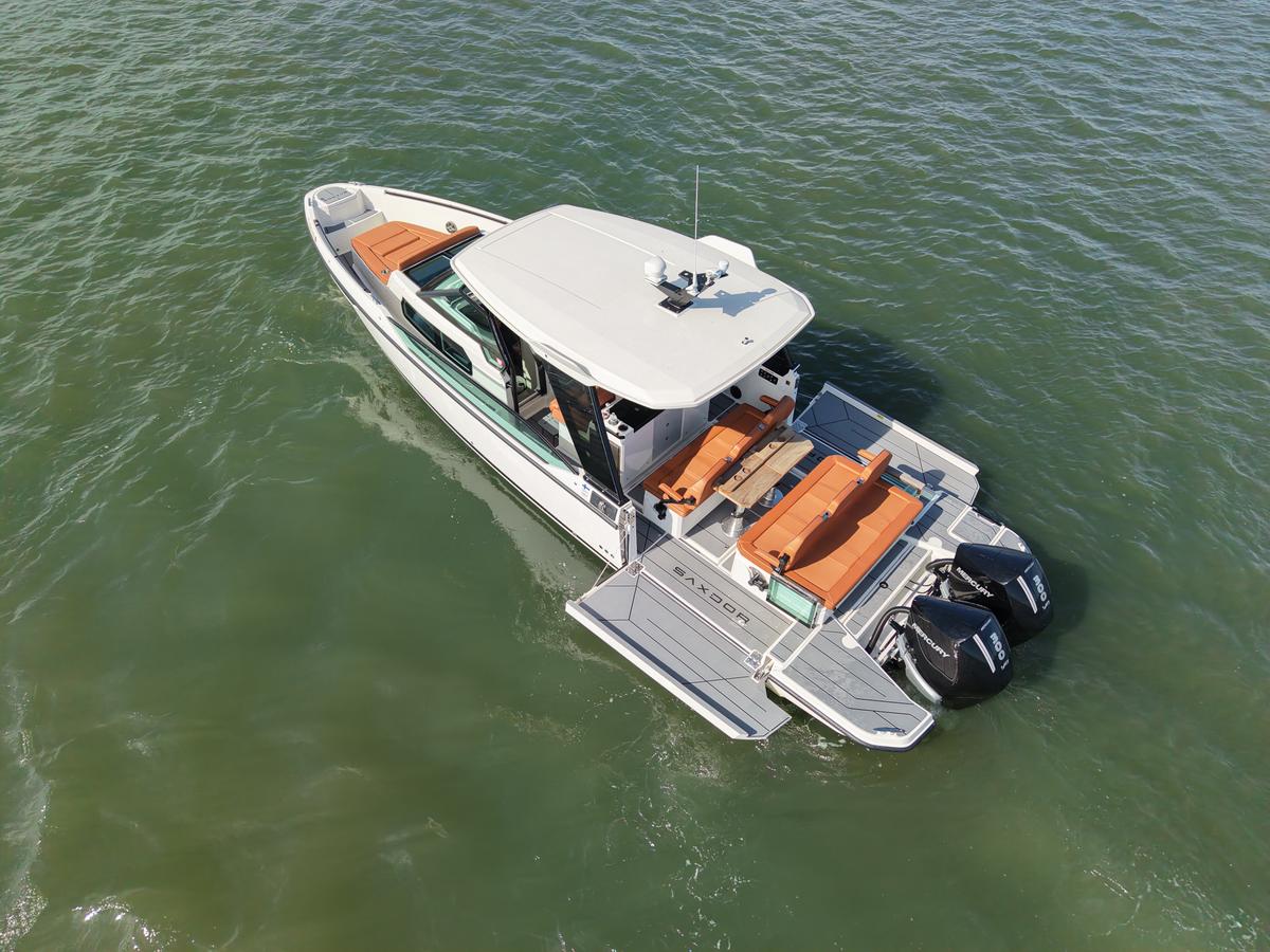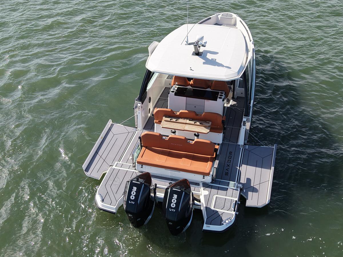 The Saxdor 320 GTO is a sleek and versatile sport cruiser that blends performance, comfort, and style in one dynamic package. With its bold angular design, spacious sunbed layout, and with the touch of a button, she unfolds her wings – transforming to your private floating beach club. Her twin-engine power affords a comfortable and practical experience on the water. Her design allows for comfortable cruising and relaxed social outings, and premium finishes throughout elevate the onboard atmosphere. Whether you’re exploring coastal waters or hosting friends for a sunset cruise, the Saxdor 320 GTO stands out as a high-performance boat that doesn’t compromise on comfort or style.